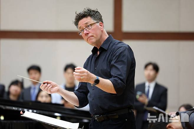 [서울=뉴시스] 박진희 기자 = 예술의전당 신작 오페라 'The Rising World: 물의 정령' 지휘자 스티븐 오즈굿이 13일 서울 서초구 예술의전당 오페라하우스 연습실에서 리허설을 하고 있다. ‘The Rising World: 물의 정령’은 이유를 알 수 없는 물의 재앙이 계속되는 가상의 왕국을 배경으로, 전통적인 질서가 더 이상 통하지 않는 시대에 불려온 물시계 장인의 여정을 중심으로 이야기가 펼쳐진다. 2025.05.13. pak7130@newsis.com