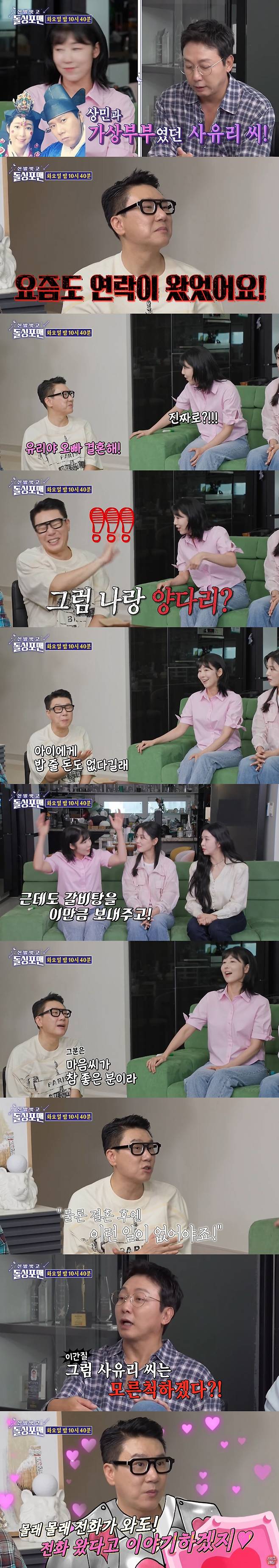 이날 탁재훈은 게스트로 출연한 사유리를 향해 "상민이랑 가상부부였지 않나. 둘이 깔끔하게 갈라섰냐"며 시작부터 미끼를 던져 이상민을 당황하게 했다.