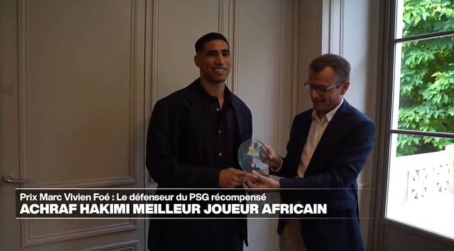 AP통신은 13일(한국시간) "파리 생제르맹(이하 PSG)의 수비수 아슈라프 하키미가 '마르크비비앙 푀 상'을 수상하며 리그앙 최고의 아프리카 선수로 선정됐다"고 전했다.
