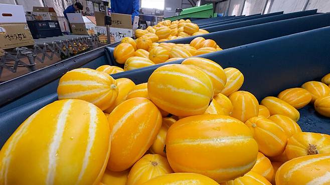 배양액으로 재배한 참외가 경북 칠곡군에서 첫 수확을 했습니다.