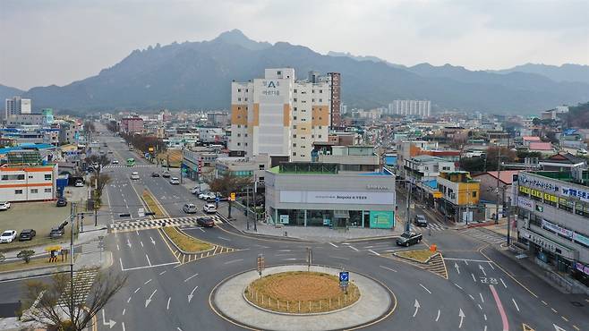 | ▲ 신북면사무소 전경. 신북버스터미널 사적지 안내판이 여기에 세워져 있다. |