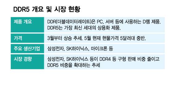 고부가 D램 제품으로 주목받는 DDR(더블데이터레이트)5의 가격이 오르고 있다.