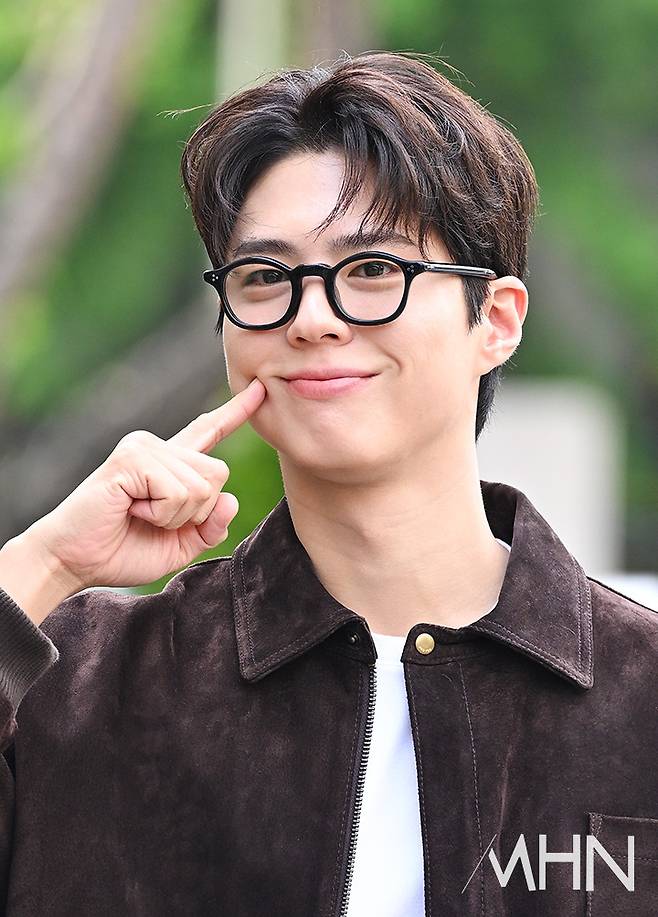 이날 박보검이 출근길에서 포토타임을 갖고 있다.