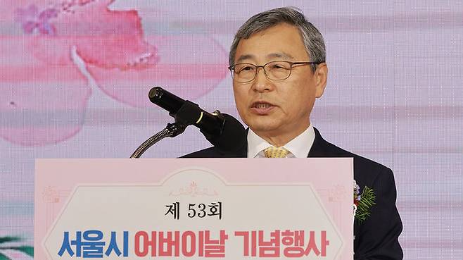 ▲ 어버이날인 지난 8일 서울 마포구 케이터틀 컨벤션홀에서 열린 제53회 서울시 어버이날 기념행사에서 정근식 서울시교육감이 축사하고 있다.