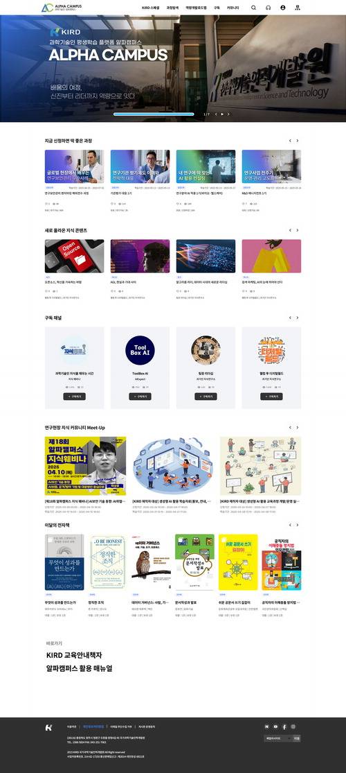 국가과학기술인력개발원(KIRD)은 과학기술인을 위한 평생학습 플랫폼 '알파캠퍼스'를 통해 개인 맞춤형 학습과 소셜러닝 등 수요자 중심의 교육 서비스를 제공하고 있다.