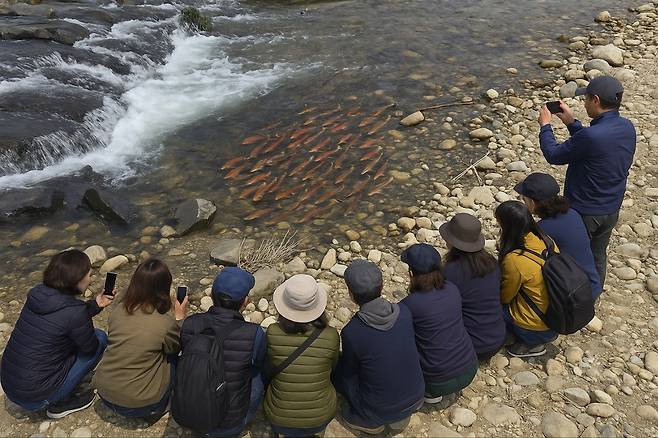 매년 봄이면 강원도 양양군의 남대천은 신비로운 자연의 순환을 목격할 수 있는 귀중한 장소가 된다. 바로 '봄의 전령사' 황어의 회귀가 시작되기 때문이다. 그 현장을 13일 찾았다.