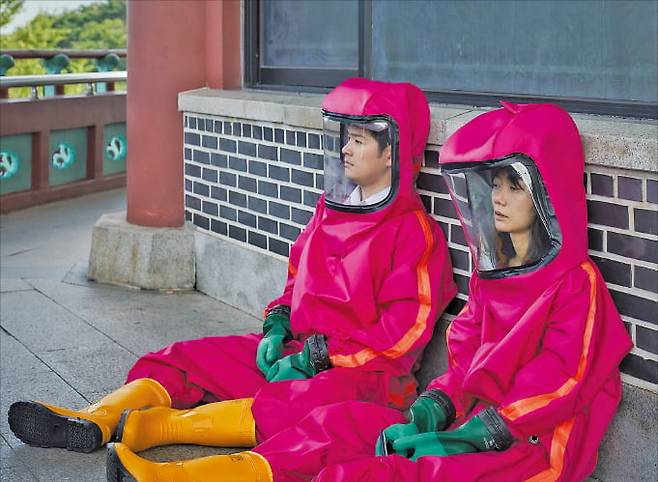 영화 ‘바이러스’(사진)는 사랑에 빠지게 하는 바이러스가 퍼지며 일어나는 이야기를 그린 로맨틱 코미디다. 민망할 정도로 동화적인 상상이지만 영화는 이 오글거리는 전제를 과감하게 밀고 나간다.