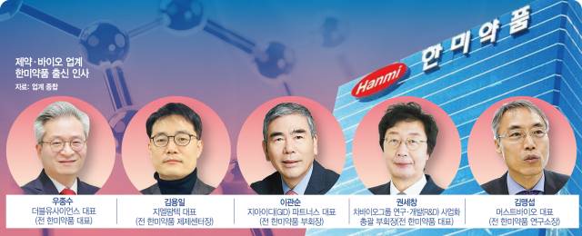 이중항체 기반 면역항암제 개발사 '머스트바이오'를 이끌고 있는 김맹섭 대표도 한미약품 연구소장 출신이다. 김 대표는 한미약품 연구소장으로 근무하면서 아모디핀·아모잘탄 등 개량신약 개발과 이중항체 바이오신약, 자가면역질환 신약, 표적항암제 등의 연구개발을 주도했다. 권세창 차바이오그룹 R&D 사업화 총괄 부회장도 한미약품에서 26년간 근무한 신약개발 전문가다. 그는 한미약품에서 호중구감소증 치료제 ‘롤론티스’ 상용화와 약물전달기술 플랫폼 ‘랩스커버리’를 개발하는데 기여했다.