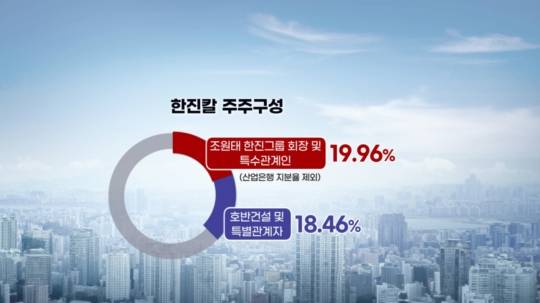최대주주인 조원진 한진그룹 회장과 특수관계인의 지분율은 30.54%인데, 이중 산업은행 보유 지분을 제외하면 호반건설과의 지분율 차이는 1.5%포인트로 좁혀진 상황입니다.