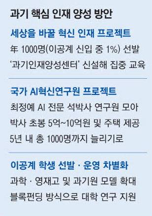 매년 이공계 대입 학생 10만명 중 1%에 해당하는 최상위 인재 1000명을 뽑아 집중 육성하자는 것이다.