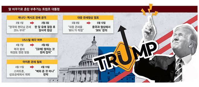 오락가락 트럼프 관세에 … 기업 "장기계획 못세워" 분통
