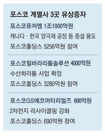 포스코그룹이 포스코퓨처엠을 비롯한 그룹 내 2차전지 소재 계열사에 유상증자 참여 방식으로 1조원 규모 자금을 투입하기로 했다.