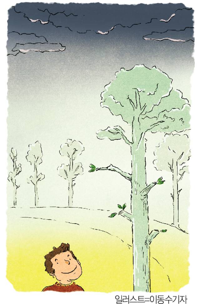 봄 가뭄, 여름 장마, 가을 태풍, 겨울 폭설이 해마다 찾아와도 나무는 평생 한 발자국도 비켜서지 않는다.