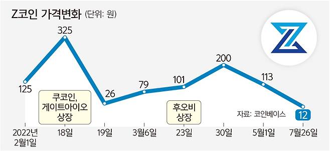상장피를 대가로 Z코인 상장이 이뤄졌지만 이후 가격이 폭락하면서 투자자들은 큰 손실을 봤다. 쿠코인, 게이트아이오 상장 당시 320원대로 출발한 Z코인은 같은 해 7월 12원까지 90% 넘게 가격이 내렸다.