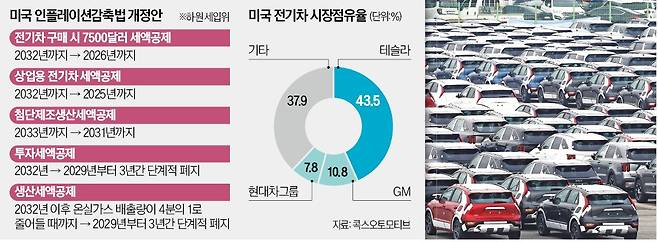 이날 의원들이 공개한 세제 법안에서 가장 눈길을 끄는 것은 소비자가 전기차를 살 때 7500달러를 지원하는 전기차 세액공제(30D)를 2026년 말까지만 운영하고 폐지하겠다는 내용이다. 원래는 2032년 말까지 운영될 예정이었으나 6년 앞당겨졌다. 또 2009년부터 2025년까지 미국에서 전기차 20만 대 이상을 판 회사에는 연말까지만 혜택을 주기로 했다. 테슬라, 제너럴모터스(GM), 현대자동차그룹 등 주요 전기차 회사는 당장 내년부터 7500달러 보조금 없이 차를 팔아야 한다는 뜻이다. 리스, 렌터카 등 상업용 전기차에는 세액공제를 받기 위한 원산지 요건을 완화해주는 제도(45W)도 당초 계획보다 7년 앞당겨 연말까지만 운영하겠다는 게 이들의 구상이다.
