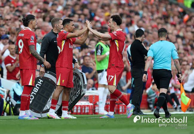 이날 리버풀이 먼저 앞서갔다. 전반 19분 코디 각포가 왼쪽 측면에서 올라온 크로스를 헤더로 마무리하며 득점에 성공했다. 전반 21분엔 루이스 디아스가 도미닉 소보슬러이의 패스를 문전에서 가볍게 밀어 넣으며 팀의 두 번째 골을 넣었다.