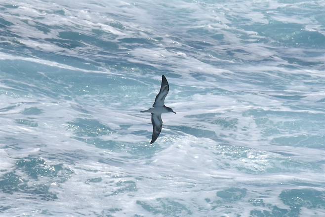 울릉도에 들어가는 배에선 비행 2개체를 만날 수 있다. 물 위를 저공 비행하는 모습을 찾기는 쉽지 않아 촬영에는 실패했다. 육지로 나올 때를 기약했다. 결국 지난 12일 슴새를 다시 만났고 촬영에도 성공했다. 흐릿 하지만 분명하게 슴새 모습이 찍혔다. 이로써 울릉도에서 찾을 것을 다짐한 3종을 모두 확인하면서 개인적 탐조 미션을 성공적으로 수행했다.