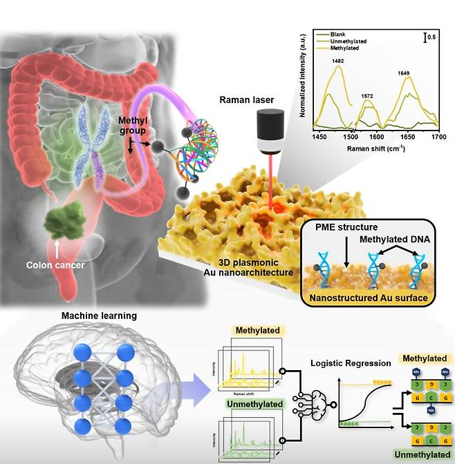 이 기술은 암세포가 생성될 때 나타나는 DNA의 메틸화 변화(화학적 변형)를 감지하는 방식이다. 기존 센서로는 초기에 극미량 존재하는 메틸화 DNA를 구별하기 어려웠지만 연구팀은 빛에 반응해 DNA 신호를 1억 배 이상 증폭시키는 소재를 개발해 이를 가능하게 했다.