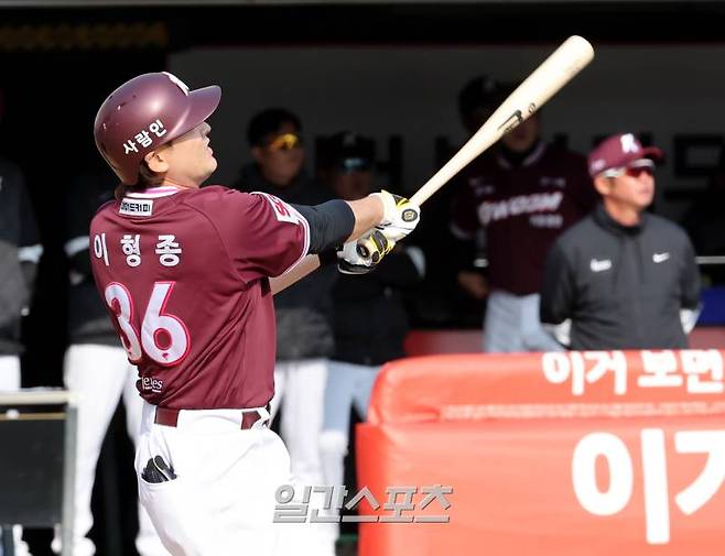 이형종은 바로 이어진 5회 초, 선두 타자로 타석에 섰다. 키움 타선이 4회까지 1점도 내지 못했던 상대 선발 투수 요니 치리노스를 상대로 우월 솔로홈런을 쳤다. 바깥쪽(우타자 기준) 낮은 코스 146.8㎞/h 투심 패스트볼을 밀어쳤다. 비거리 115m. 자신의 올 시즌 1호 홈런이었다.