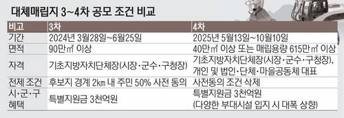 환경부는 3차 공모와 비교해 4차 공모 조건을 느슨하게 조정했다. → 표 참조