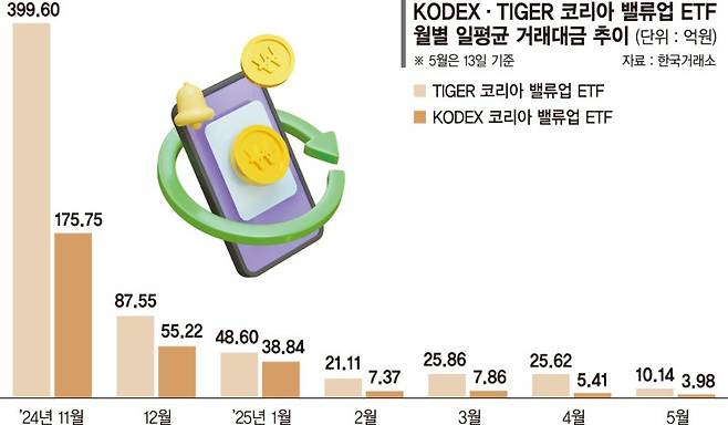 힘 빠진 밸류업 ETF… 반년새 하루 거래대금 98% 급감 [코리아 밸류업 1년 (上)]