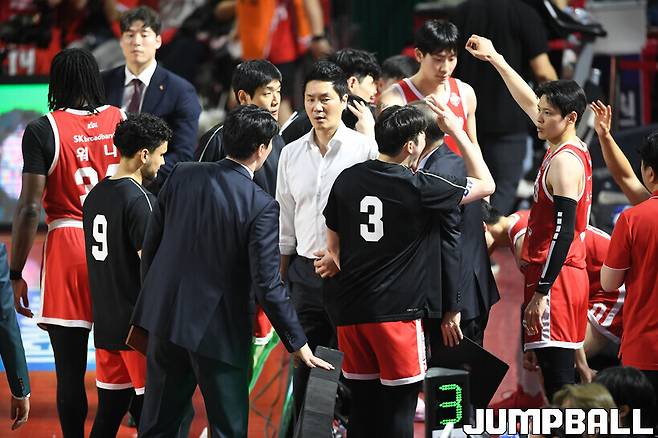 주축 김선형, 안영준, 자밀 워니부터 1경기도 뛰지 못한 신인 이민서, 강재민까지. SK는 선수단 전원이 0%의 기적을 위해 함께 뛰고 있다.