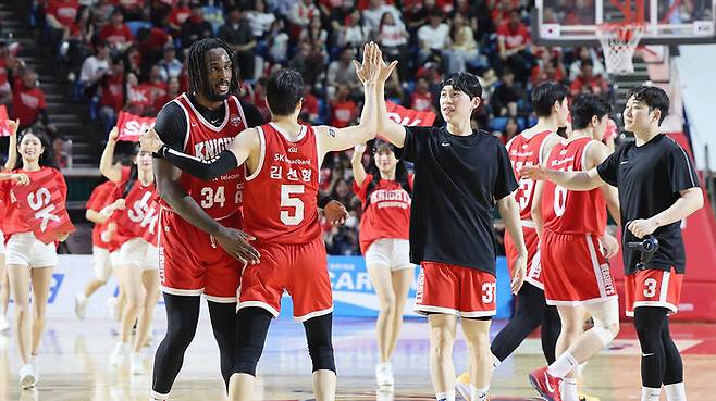 SK는 오늘(13일) 서울 송파구 잠실학생체육관에서 열린 2024-2025 KCC 프로농구 챔피언결정전(7전 4승제) 5차전 홈 경기에서 LG를 86대 56으로 완파했습니다.