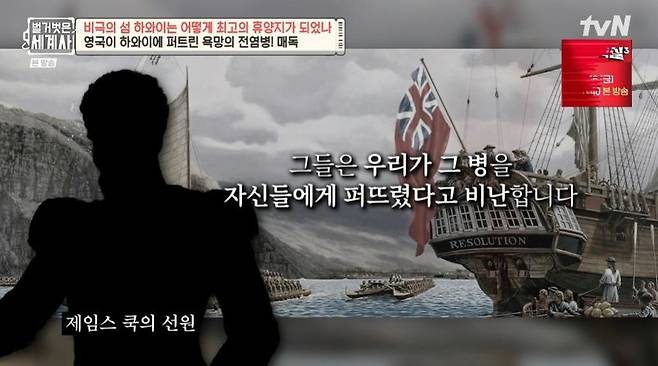 반면, 하와이 원주민은 제임스 쿡 일행을 먼 바다에서 온 신으로 생각해 뜨겁게 환영했다고 한다. 하지만 김 교수는 "제임스 쿡의 방문은 하와이 원주민에게 상상치 못한 불행을 안겼다"라며 제임스 쿡 일행이 전염병을 옮겼다고 전했다. 그렇게 하와이에 전염병이 퍼졌고, 특히 성병인 매독이 전파되면서 원주민들을 위험에 빠뜨렸다.