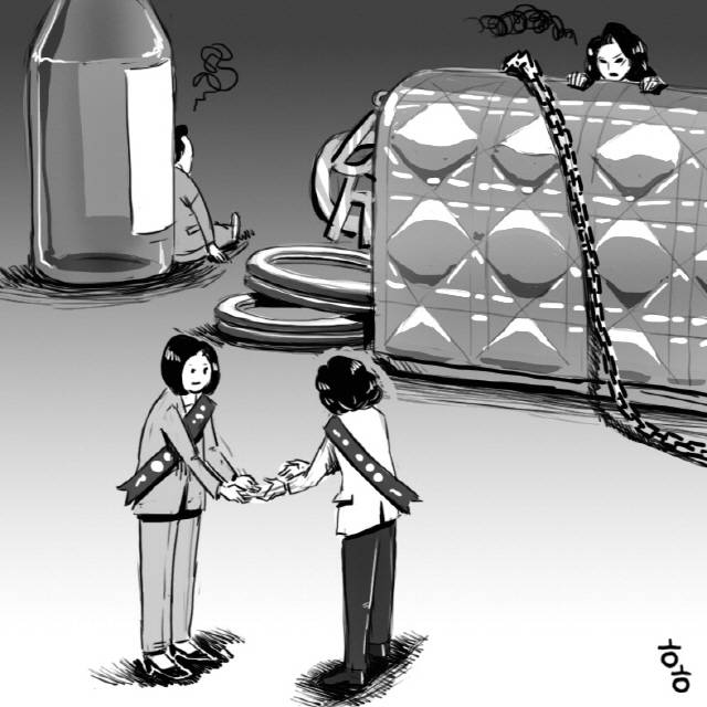 배우자의 일탈은 그 자체로 문제지만 권력자의 판단과 의사결정을 왜곡할 수 있다는 점을 간과해선 안 된다. 이번 대선에서도 유력주자인 이재명 후보의 부인 김혜경 여사와 김문수 후보의 부인 설난영 여사가 퍼스트레이디 자리를 놓고 또 다른 경쟁을 벌인다. 2010년 각각 성남시장과 경기도지사 부인으로 만난 적이 있다고 한다. 품격을 해치지 않으면서 이겨야하는 부인들의 리그다. 유권자가 절대 놓쳐서는 안 될 승부다.
