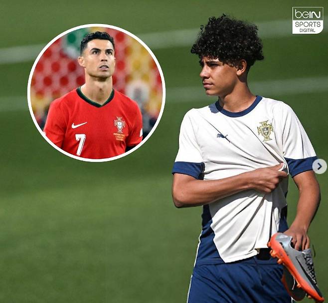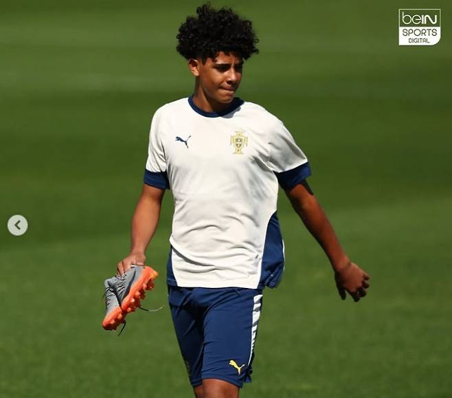 영국 '비인스포츠'는 13일(한국시간) "호날두 주니어가 포르투갈 대표팀에서 훈련하고 있다. 그는 아버지 그리고 킬리안 음바페와 같은 축구화를 신고 등장해 대표팀 훈련을 소화했다"라며 "호날두 주니어는 포르투갈 U-15 대표팀에 처음으로 발탁되며 어린 선수로서 커다란 한 걸음을 내디뎠다. 첫 훈련부터 그는 뛰어난 경기력뿐만 아니라, 신발 선택으로도 큰 주목을 받았다"라고 보도했다.