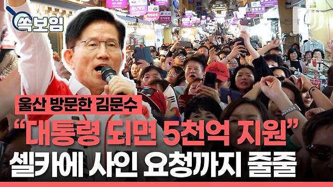 셀카에 사인요청까지 줄줄이···울산서 지지 호소하는 김문수 후보 신원윤 기자 2025. 5. 14. 00:57 음성으로 듣기 음성재생 설정 이동 통신망에서 음성 재생 시 데이터 요금이 발생할 수 있습니다. 글자 수 10,000자 초과 시 일부만 음성으로 제공합니다. 남성 여성 느림 보통 빠름 음성 재생하기 닫기 음성 재생 중지 번역 설정 번역beta Translated by kaka i 한국어 - English 영어 日本語 일본어 简体中文 중국어 Nederlands 네델란드어 Deutsch 독일어 Русский 러시아어 Malaysia 말레이시아어 বাঙ্গোল ভাষা 벵골어 tiếng Việt 베트남어 Español 스페인어 اللغة العربية 아랍어 Italiano 이탈리아어 bahasa Indonesia 인도네시아어 ภาษาไทย 태국어 Türkçe 튀르키에어 Português 포르투갈어 Français 프랑스어 हिन्दी 힌디어 닫기 번역중 Now in translation 글씨크기 조절하기 글자크기 설정 파란원을 좌우로 움직이시면 글자크기가 변경 됩니다. 가 매우 작은 폰트 작은 폰트 보통 폰트 큰 폰트 매우 큰 폰트 가 이 글자크기로 변경됩니다. (예시) 가장 빠른 뉴스가 있고 다양한 정보, 쌍방향 소통이 숨쉬는 다음뉴스를 만나보세요. 다음뉴스는 국내외 주요이슈와 실시간 속보, 문화생활 및 다양한 분야의 뉴스를 입체적으로 전달하고 있습니다. 닫기 인쇄하기 13일 국민의힘 김문수 대선 후보가 울산을 방문했다.