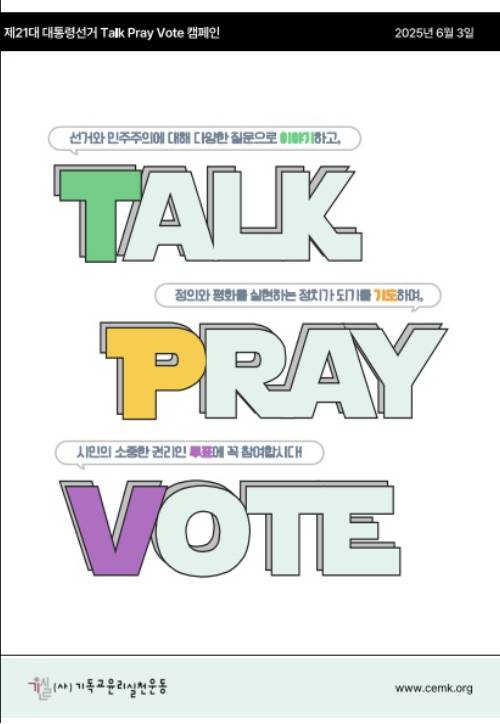 한편, 기윤실은 토크(Talk)·프레이(Pray)·보트(Vote), 'TPV 캠페인'도 함께 진행합니다.