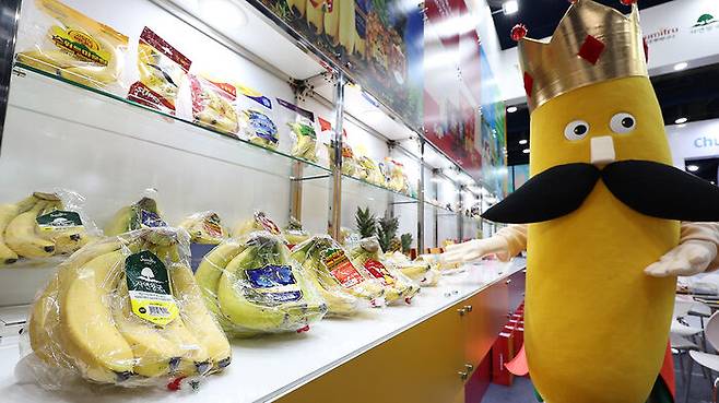 ▲ '2024 코엑스 푸드위크'에서 바나나 인형 탈을 쓴 홍보모델
