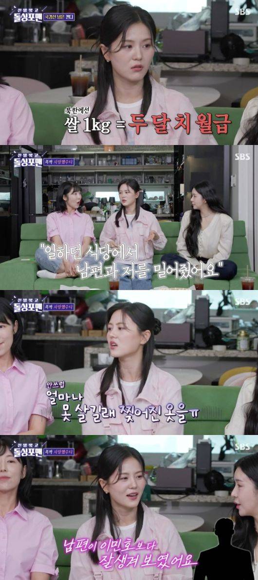 김서아는 “처음에는 일하던 식당에서 남편과 저를 밀어줬다. 남편이 식당에 매일 두 번 왔다. 처음 만나면 북한에선 돌려 말한다. 남편이 찢어진 청바지를 입고 온 것이다. 너무 안쓰러웠다. 청바지 기워주고 싶었다. 얼마나 못 살길래, 이런 생각을 했다. 마음이 안 좋고 신경이 쓰였다”라고 남편과의 만남을 회상했다.
