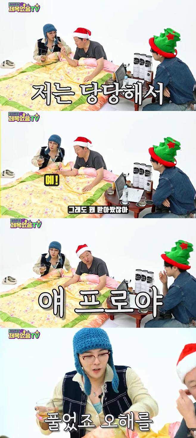 13일 정형돈의 '제목없음TV' 채널에는 지드래곤이 출연해 정형돈과 원앙금침에서 눕방을 펼쳤다.