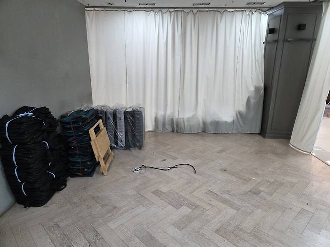 실제 5개 층으로 이뤄진 이 상가는 위층으로 올라갈수록 공실이 눈에 띄게 늘었다. 밤에만 영업하는 주변 패션상가들과 달리 이곳은 주·야간 모두 영업을 해왔지만, 낮 시간대에는 직원을 두지 않고 '무인 운영'을 택한 점포가 늘었다. 장사가 안 돼 인건비를 감당할 수 없어서다. 매장 입구엔 ‘문의는 전화 주세요’라고 적힌 팻말만 덩그러니 놓여 있었다. 상인회와 건물주는 자구책으로 지난해 12월부터 임대료를 10% 감면했지만 상황은 나아지지 않았다. 전국 각지의 소매상들로 북적여야 할 저녁 시간대에도 천막을 두른 채 영업 개시를 하지 않는 매장도 많았다.