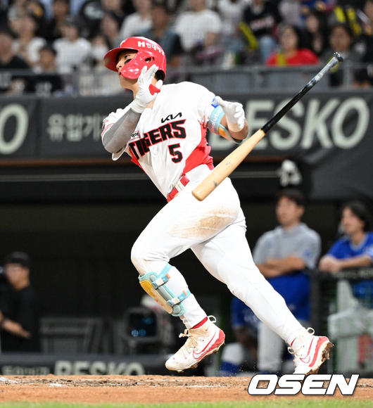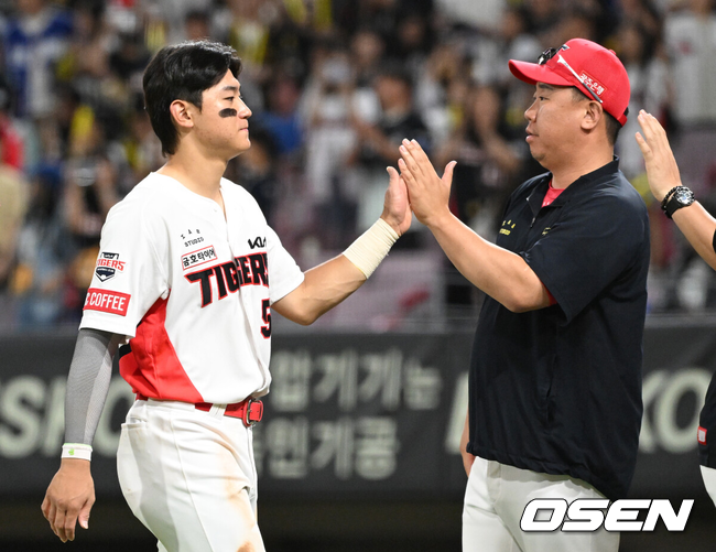 0-0으로 팽팽한 5회말 1사 1,2루 기회를 잡았으나 김선빈이 범타로 물러났고 김도영에게 기회가 찾아왔다. 앞선 두 타석은 범타로 물러났으나 데이비슨의 투구에 타이밍이 나쁘지 않았다. 타석에 들어가자마자 초구 직구를 가볍게 받아쳤고 좌중간을 가르는 2루타가 되었다. 주자들이 모두 홈을 밟아 2-0으로 리드를 잡았다.