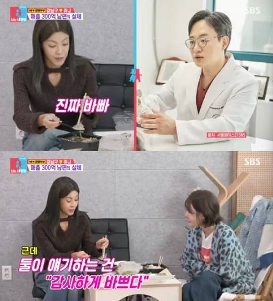 강남구의 아내 쥬니의 연기 선생님 인연으로 등장한 이윤지는 남편의 근황을 묻는 쥬니의 말에 "남편이 치과를 개원한지 5년 정도 됐다. 감사하게도 바쁘다. 코로나19 시기에 개원을 했는데, 다행히 바빠서 여전히 집에 안 온다"면서 웃었다.