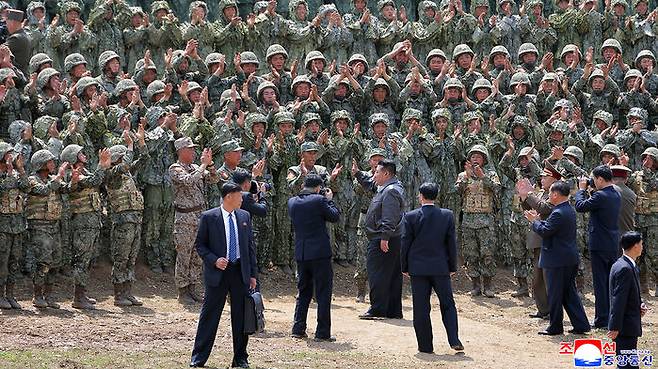 김 위원장은 만능대대 기준 자격을 돌파한 인민군 제11군단 관하 구분대 전투원들을 만나 격려하고 기념사진을 찍었다고 통신은 전했습니다.