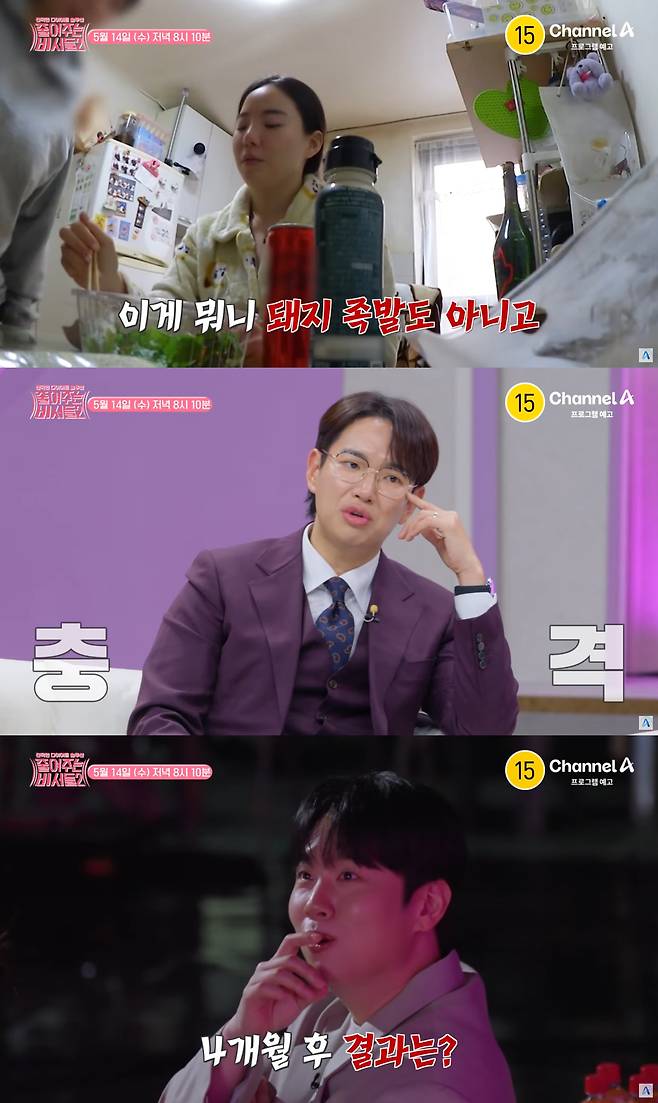 365일 다이어트를 시도했다는 그녀의 일상 관찰 결과 하루에 제로 칼로리 음료만 8캔을 마시는가 하면, 극단적인 탄수화물 제한과 잘못된 다이어트 방식으로 스스로의 건강을 심각하게 해치고 있었다. 이를 지켜보던 내과 전문의는 “이러한 식습관을 지속할 경우 사망에 이를 수 있다”라는 심각한 경고를 전했을 뿐만 아니라 그녀의 몸 상태는 정상 범위를 넘어선 내장지방과 10살이나 높은 혈관 나이로 건강에 심각한 적신호가 켜진 상황이었다.