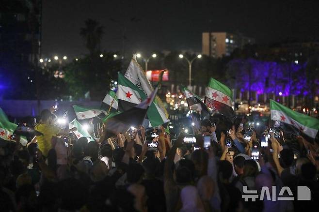 [다마스쿠스=AP/뉴시스] 13일(현지 시간) 도널드 트럼프 미국 대통령의 대시리아 제재 해제 및 시리아 새 정부와의 관계 정상화 추진 발표 소식을 접한 시리아인들이 수도 다마스쿠스의 우마이야드 모스크 광장에 모여 환호하고 있다. 2025.05.14.