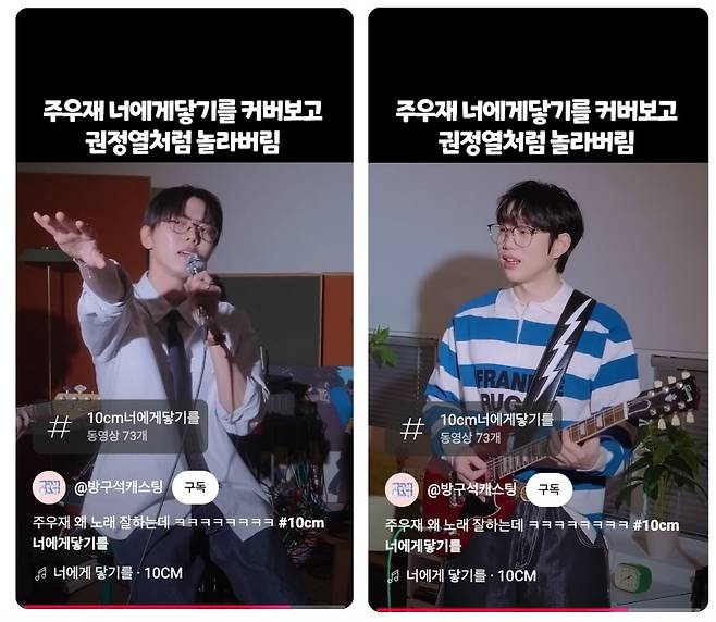 | ▲ 십센치와 주우재의 '너에게 닿기를' 숏츠 챌린지 영상 |