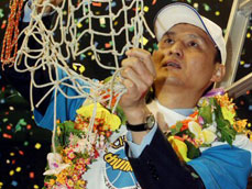 <사진> 삼성 시절 챔피언결정전에서 모비스를 4승으로 꺾고 우승한 안준호 감독. 채널에이 자료