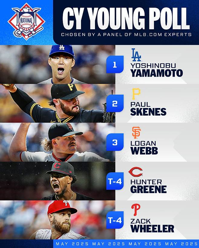 2025 사이영상 레이스는 AL 디펜딩 챔피언 스쿠발의 재현과 NL 야마모토의 독주 체제로 시즌 초반부터 뜨겁게 달아오르고 있다.