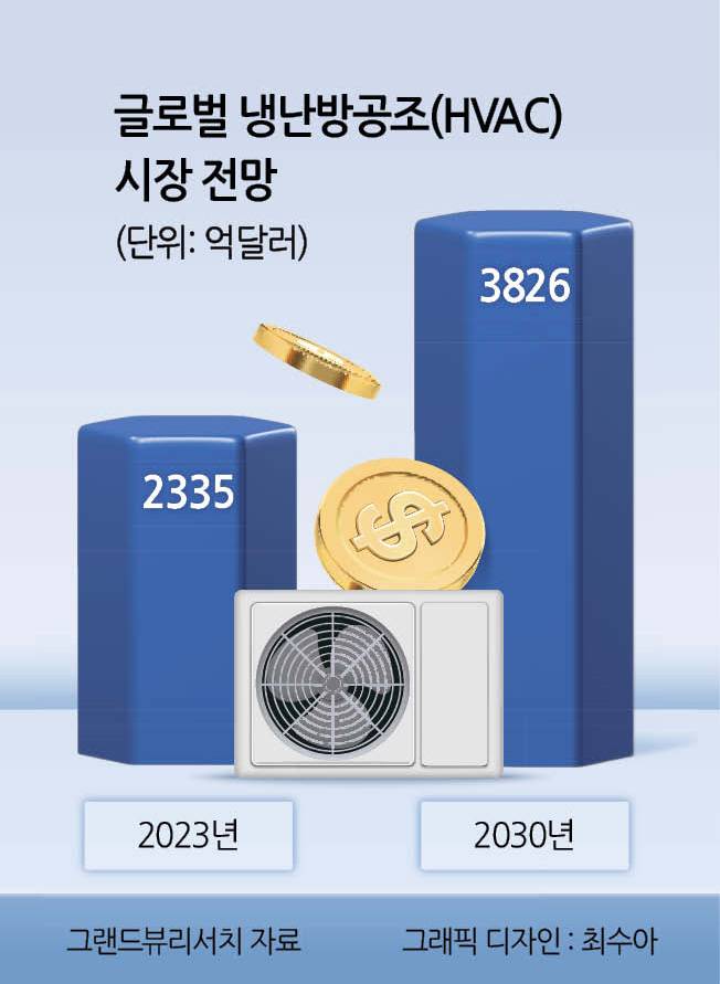 공조사업은 지구온난화, 친환경 에너지 규제 등으로 글로벌 수요가 늘고 있다. 특히 공조사업 중 공항, 쇼핑몰, 공장 등 대형 시설 대상 중앙공조 시장은 2024년 610억달러에서 2030년 990억 달러로 연평균 8% 성장이 예상된다. 이 중 데이터센터 부문은 2030년까지 441억달러 규모로 연평균 18%의 높은 성장률로 공조 시장을 이끌 전망이다.