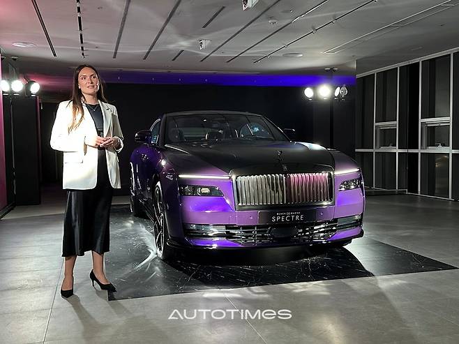 롤스로이스가 블랙 배지 스펙터를 13일 서울 청담 전시장에서 공개했다. 신차는 브랜드 역사상 가장 강력한 성능을 내면서도 유니크한 스타일을 갖춘 제품으로 자신만의 존재감을 드러내길 원하는 소비자들을 겨냥한 제품이라는 게 회사 측 설명이다.