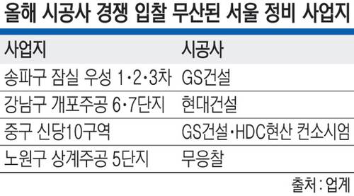 업계에서는 상당수 정비 사업지가 시공사를 구하지 못해 사업 차질을 빚으면 여파가 도심 신축 아파트 공급 부족으로 이어질 수 있다는 우려가 나온다.