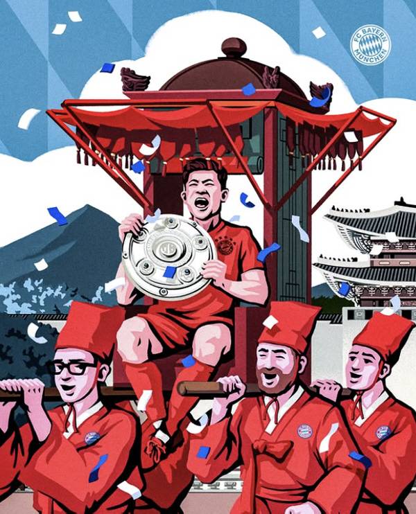 더욱 적극적으로 세리머니를 펼칠 것을 유도하는 제스처였다. 이에 김민재는 밟은 미소와 함께 하늘 높이 트로피를 들어 올렸다. 이는 김민재의 분데스리가 첫 우승 트로피로 한국인 역사상 최초로 유럽 5대 리그 가운데 2개 리그를 제패한 선수가 됐다.
