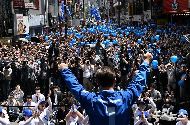 부산 서면 유세 나선 이재명 후보