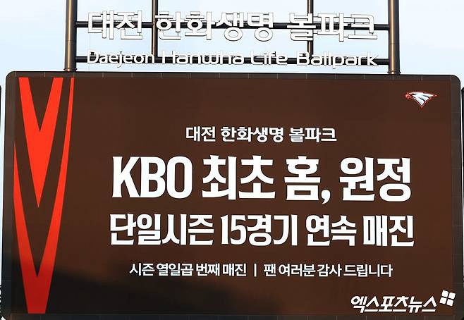 (엑스포츠뉴스 대전, 조은혜 기자) 한화 이글스가 KBO 15경기 연속 매진이라는 대기록을 작성했다.